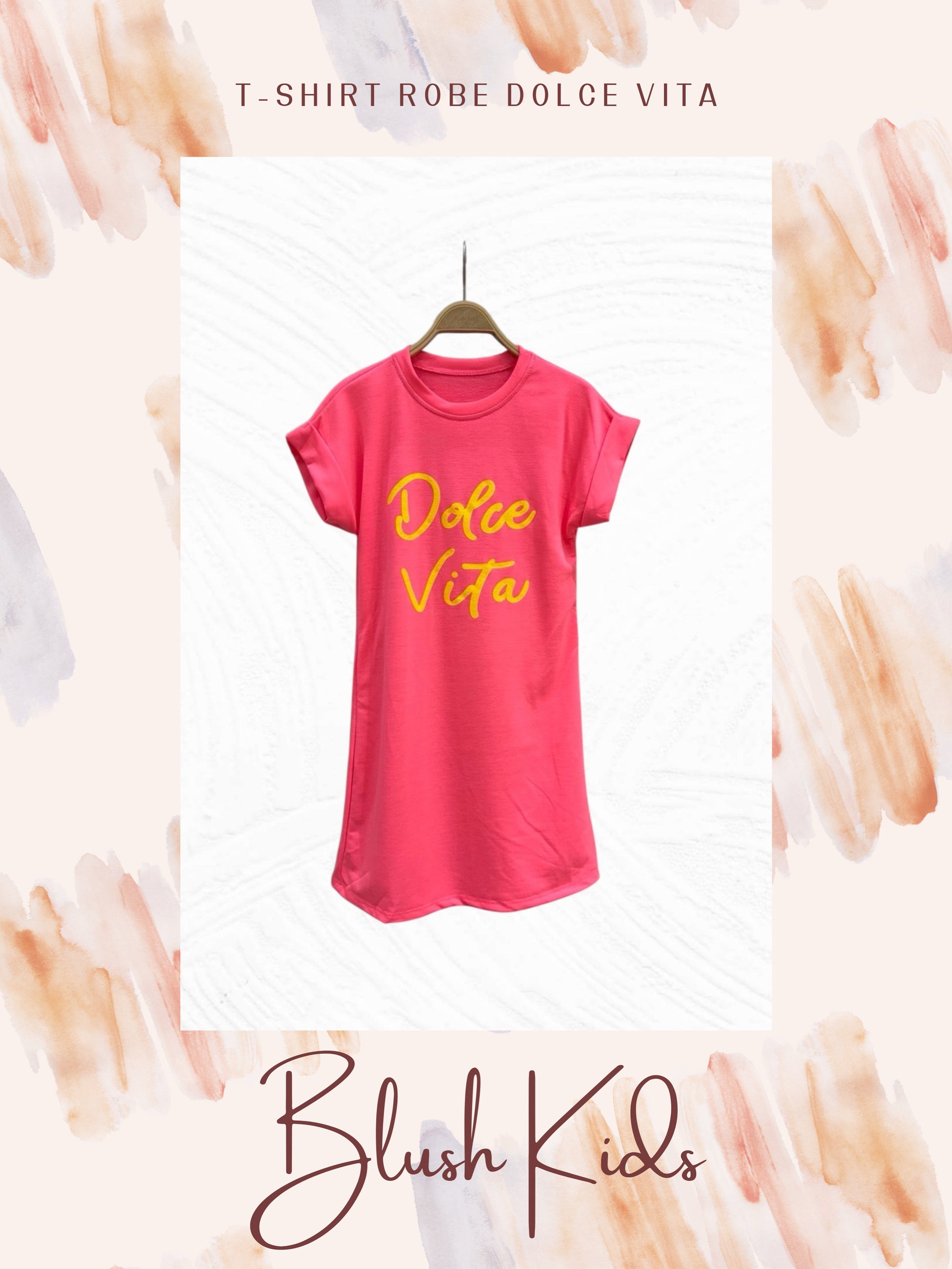 Légère, confortable et ultra stylée, la robe t-shirt Dolce Vita est le must-have de l’été pour les filles de 4 à 14 ans ! Conçue dans une matière douce et respirante, elle allie confort absolu et look tendance. Son imprimé “Dolce Vita” en lettres flashy apporte une touche ensoleillée et joyeuse à chaque tenue, idéale pour les vacances, les sorties ou la vie de tous les jours.